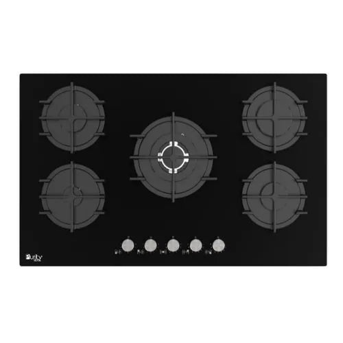 بيوريتي مسطح غاز بلت ان 5 شعلة 90 سم حوامل زهر زجاجى أسود HPT911G