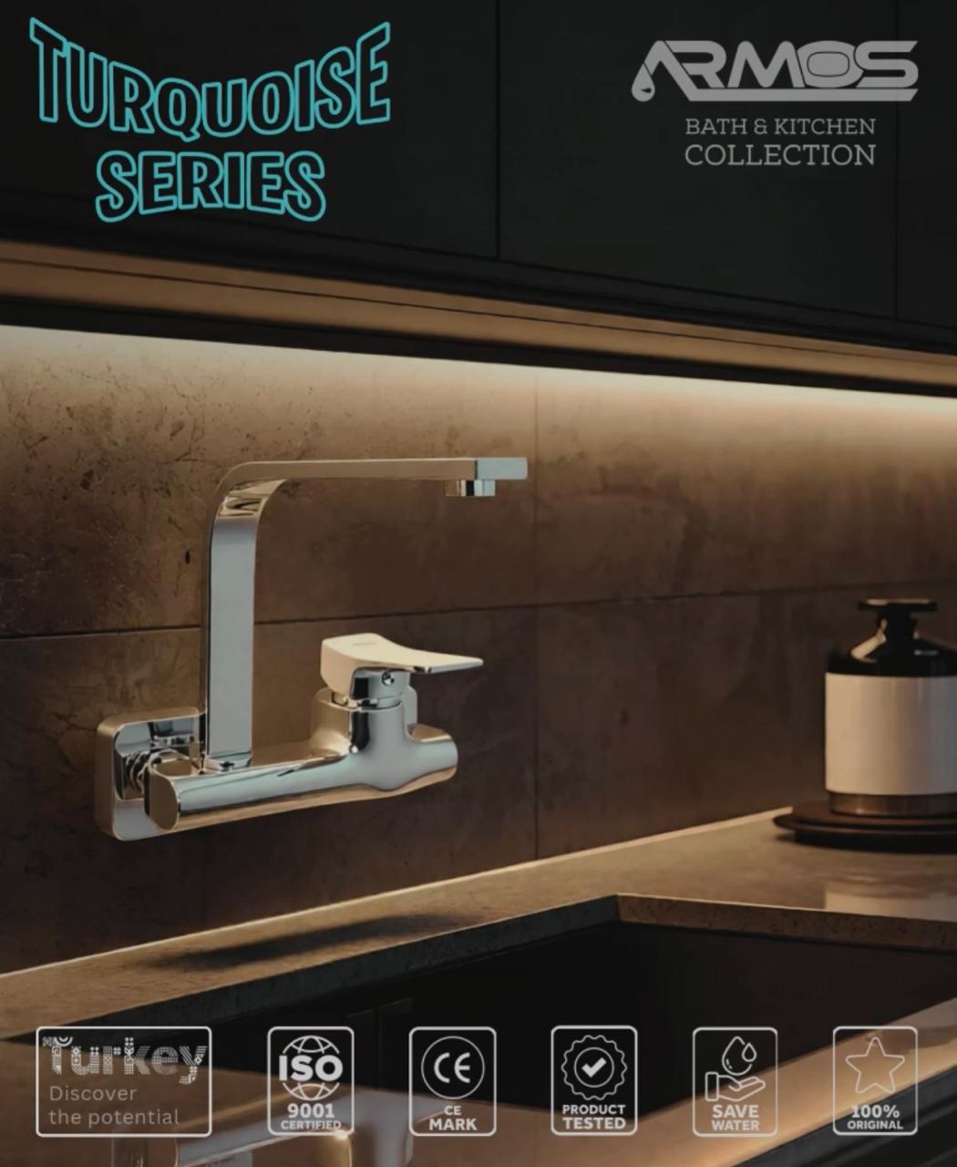 خلاط مطبخ حائطى من أرموس تركى موديل TURQUOISE لون نيكل