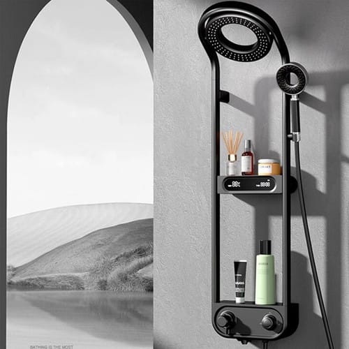 دش ذكي فاخر بشاشة رقمية – تصميم أسود مطفي عصري