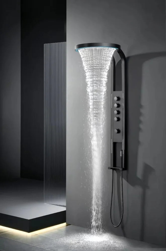 (/ /)شاور بانل ديجيتال هو نظام استحمام متطور يجمع بين التكنولوجيا الحديثة والتصميم الأنيق لتوفير تجربة استحمام مميزة. فيما يلي بعض المواصفات والميزات الرئيسية لهذا الشاور بانل:
