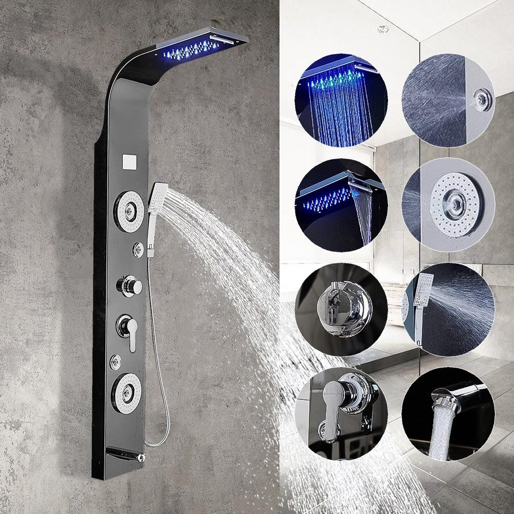 شاور بانل مضيئة بشاشة ديجيتال بمجموعة جيت علوى و عدد 2 مجموعة جيتات خلفية وسماعة بالخرطوم والمحول اللون أسود منتج مستورد هل كان هذا مفيدًا؟ 10 3