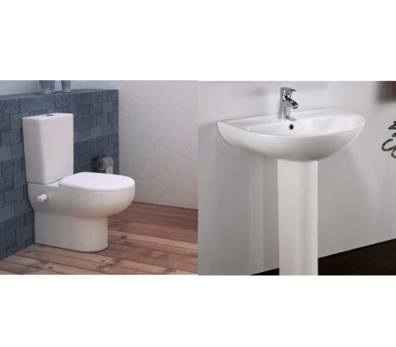 طقم حمام بلان مرحاض ملاصق للحائط سيديلى ذاتى الغلق و حوض مقاس 65 سم بالعامود الطويل من أيديال ستاندرد