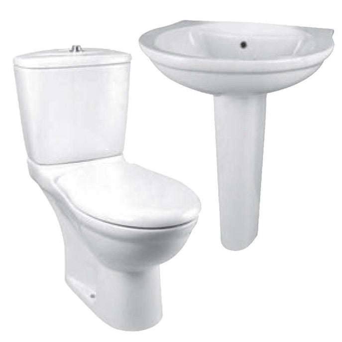 طقم حمام سان ريمو مرحاض والسيدالى ذاتى الغلق و حوض عامود طويل 60 سم من أيديال ستاندرد لون ابيض
