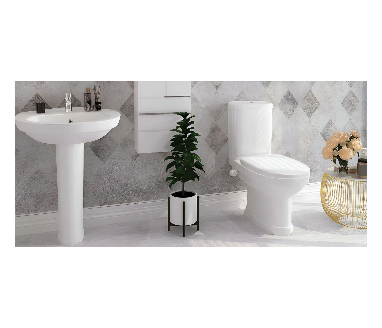 طقم حمام كابرى مرحاض كامل وحوض مقاس 55 سم بالعمود الطويل من ليسكو