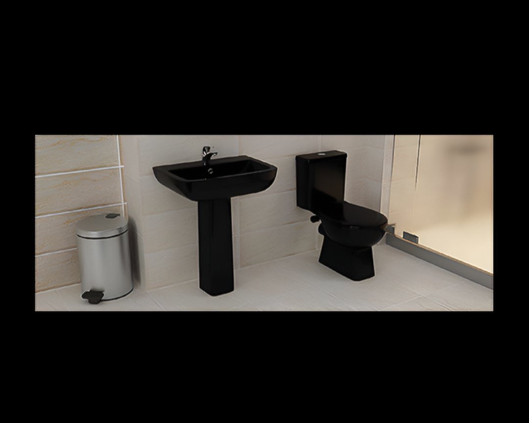 طقم حمام/ دياموند حوض بالعمود الطويل ٦٠سم بمرحاض بطقم شطاف قطعة واحدة وسيديلى بولى خزان بماكينة الصرف ضاغط مزدوج من ليسيكو