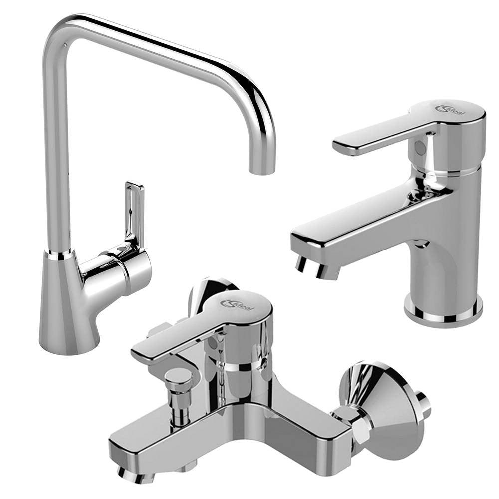 طقم خلاطات أيديال ستريم ( خلاط حوض BC947AA و خلاط بانيو BC950AA و خلاط مطبخ BC951AA ) اللون كروم من أيديال ستاندرد