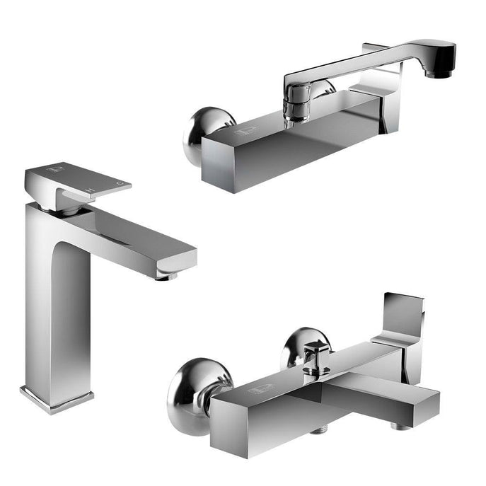 طقم خلاطات اكوا مكون من 3قطع (خلاط المطبخ حائطى AQ-2 - خلاط حوض AQ-4 - خلاط بانيو AQ-1) اللون كروم من سفنكس عبده حنفيه