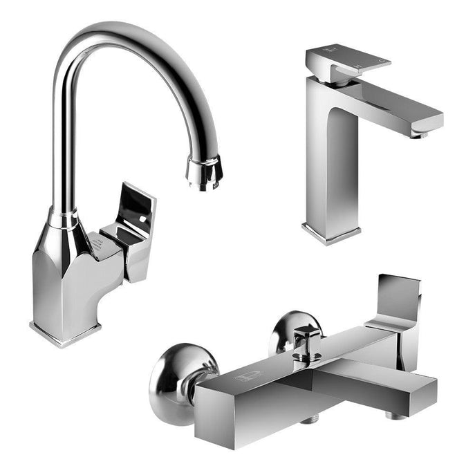 طقم خلاطات اكوا مكون من 3قطع (خلاط المطخ شجرة AQ-5 - خلاط حوض AQ-4 - خلاط بانيو AQ-1) اللون كروم من سفنكس عبده حنفيه