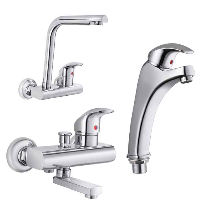 طقم خلاطات ايليت مكون من 3قطع ( خلاط حوض +خلاط بانيو +خلاط مطبخ حائطى ) اللون كروم من جولد