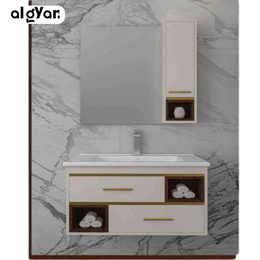 ✔ تصميم فاخر يشمل الحوض، المرايا، والدولاب – لمظهر أنيق ووظيفة عملية.