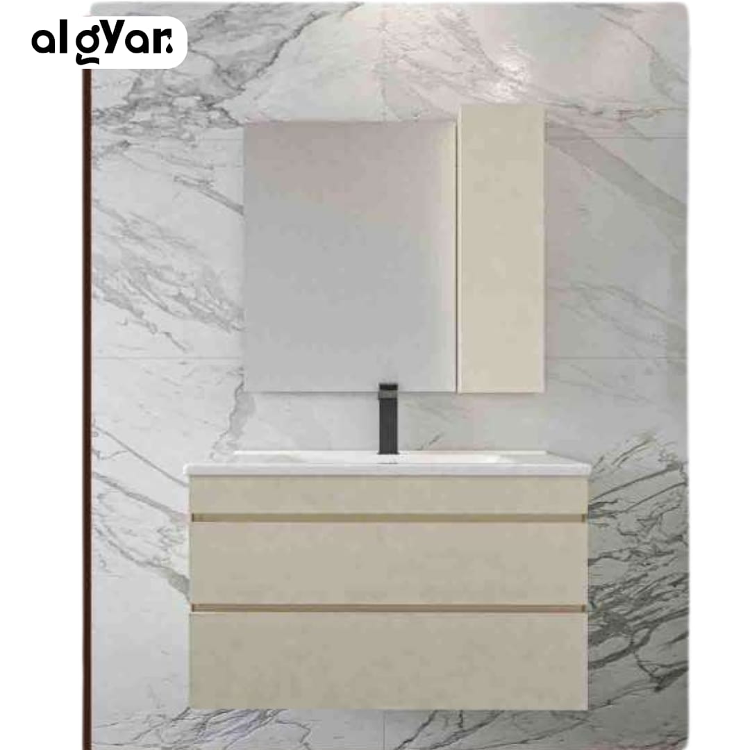 ✔ تصميم أنيق يشمل الحوض، المرايا، والدولاب – لمظهر عصري ووظيفة عملية.