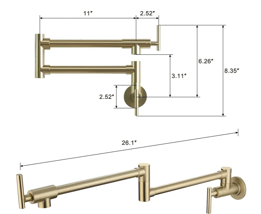 Pot Filler حنفية بوتاجاز / حنفية حوض مطبخ تركب فوق بوتجاز مثبته علي الحائط قابل للطي لون دهبى